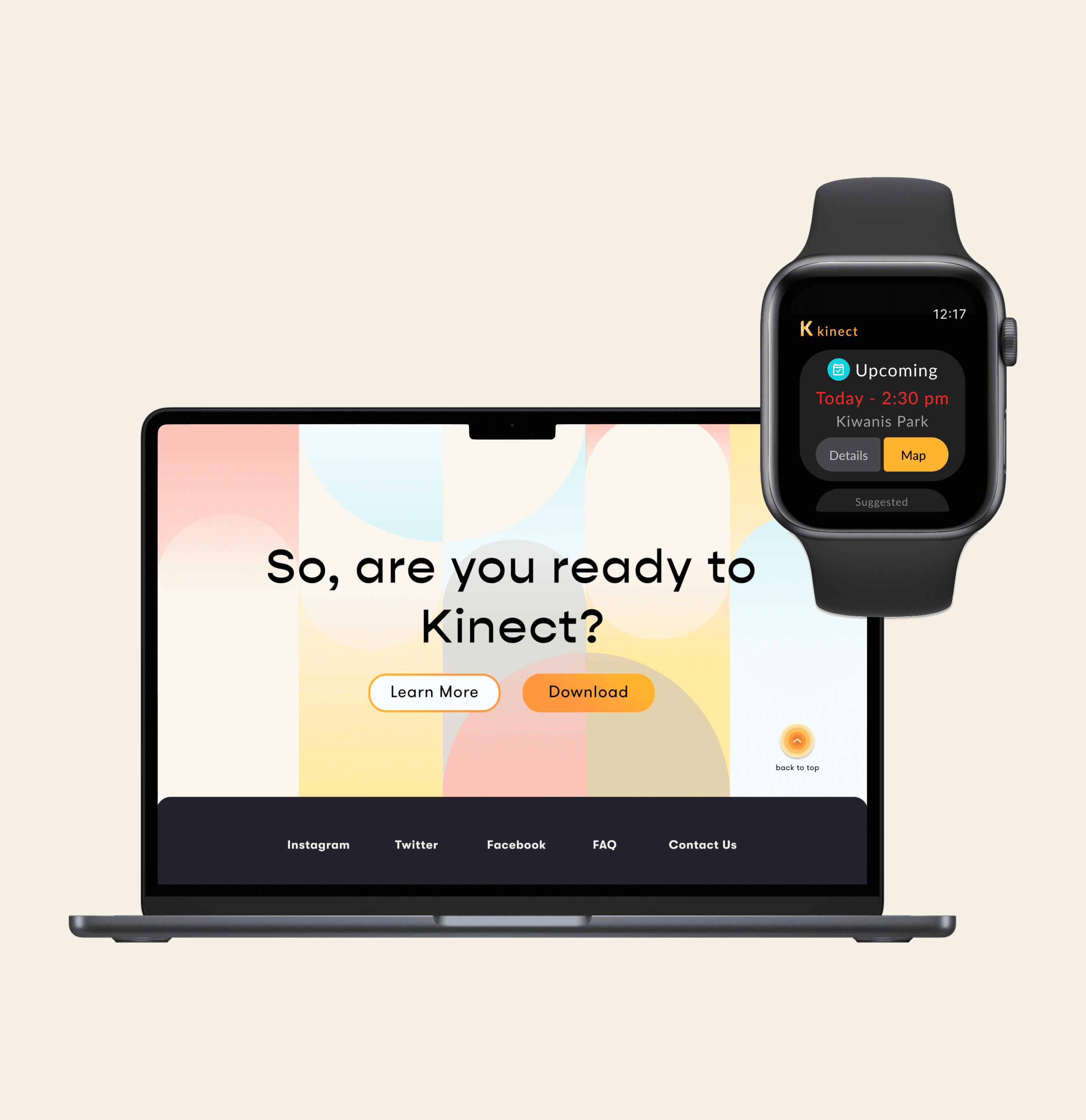 Thanks to design iterations that raised task completion by 40%, Kinect's users can easily sign up for local events based on their interests, thereby meeting others and spending quality time that builds genuine friendships. The app's user-friendly interface and intuitive design make it easy for users to view and sign up for events, track upcoming events, create a profile, and send messages directly to users or within groups. Users can also download Kinect to their Apple Watch, helping them to keep track of their signed up events when they are on the go.
