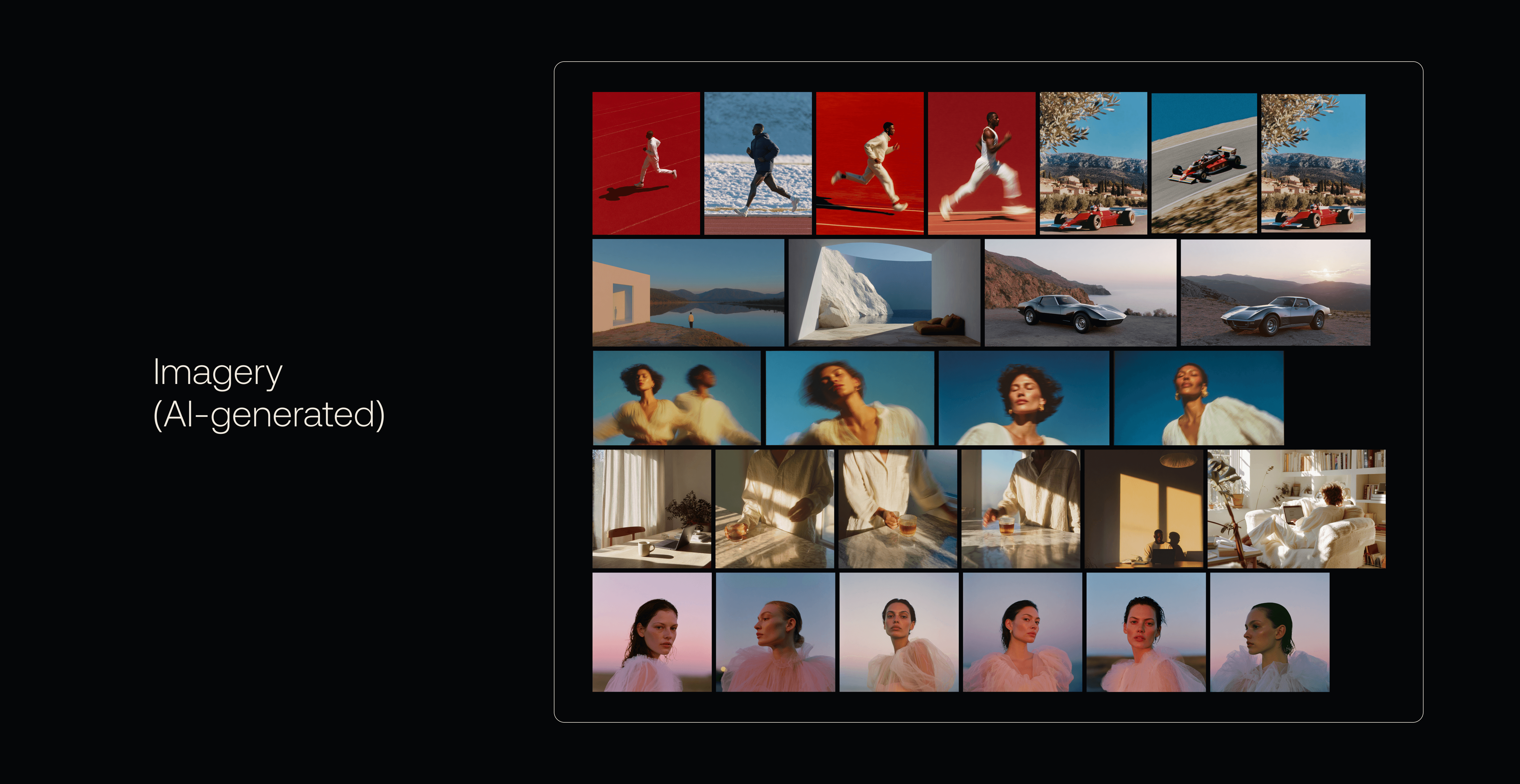 Rather than imposing a traditional brand system, the visual identity was designed to flex around AI-generated imagery supplied by the client. The interface acts as a quiet frame, allowing visuals to carry emotion, curiosity, and narrative